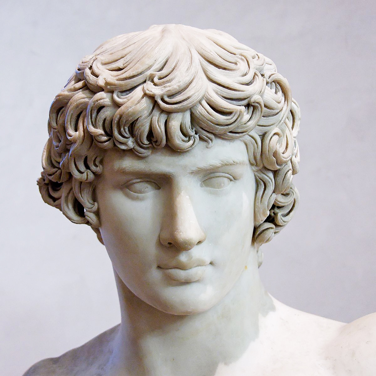 Antinoos wurde etwa um 112 nach Christus in der Stadt Claudio-polis in der damaligen römischen Provinz Bithynien in der heutigen Türkei geboren. Wer genau er war und von welcher Familie er stammte, wissen wir nicht. Wir können jedoch mit einiger Sicherheit sagen, dass Antinoos weder Sklave noch Angehöriger der untersten Klassen war. Er war jahrelang Begleiter und Liebhaber des römischen Kaisers Hadrian, ist als junger Mann im Nil ertrunken und wurde danach vom Kaiser zum Gott erhoben. Das ist ziemlich alles, was wir sicher über ihn wissen.