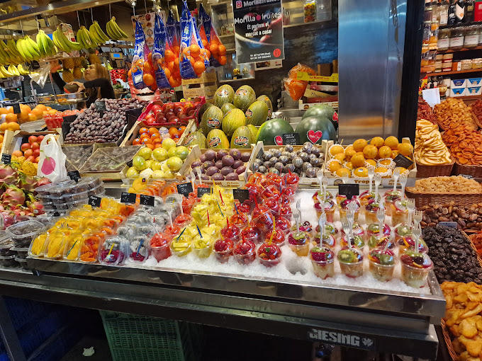 - Mercat de la Boqueria: Die berühmte Markthalle direkt an den Ramblas. Die Vielfalt der katalanischen Küche findet sich in den Auslagen der Boqueria. Hier gibt es einfach alles: Obst und Gemüse, Fisch und Meeresfrüchte, Fleisch, Konserven, Hülsenfrüchte, Käse. Hier finden sich lokale Produkte und importierte Lebensmittel, katalanische Spezialitäten sowie traditionelle und moderne Gerichte aus aller Welt.