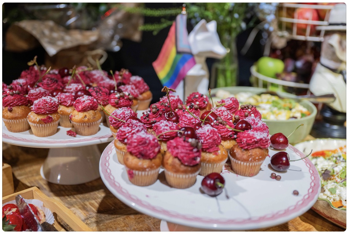 Die süsse Symbolik: Aufgetürmte Cupcakes, verziert mit Kirschen, Glitzer und Stolz. Kein Pancake, aber dafür ganz viel Inhalt. Und Liebe. Danke an Coca‑Cola, Swiss Diversity – und alle, die den Wandel mittragen.