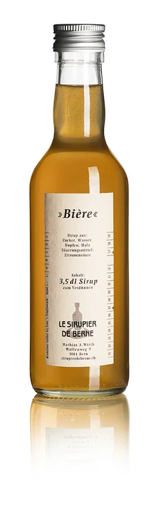 Als Basis für diesen Sirup dient das besonders herbe «HoppYBoys»-Bier der Barbière-Brauerei. Dank dem intensiven Hopfen behält der Sirup – trotz Erwärmung und Zuckerzugabe – seinen charakteristischen Biergeschmack. Er ist alkoholfrei, aber definitiv kein Kindersirup. Unser Tipp: Mit kohlensäurehaltigem Wasser eiskalt geniessen.