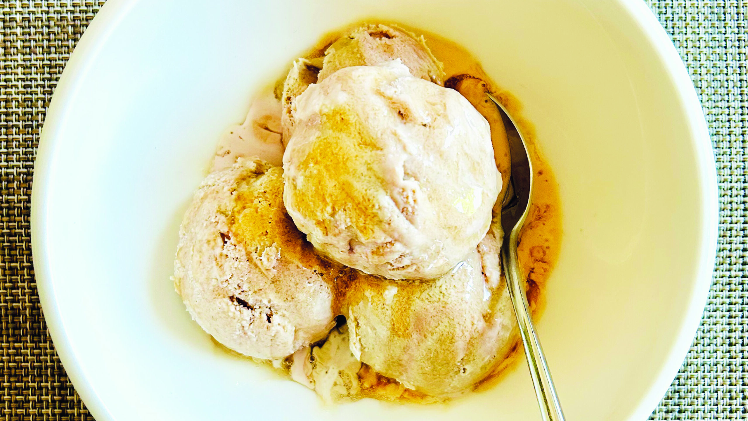 Vor dem Servieren die Glacekugeln mit Biersirup beträufeln.