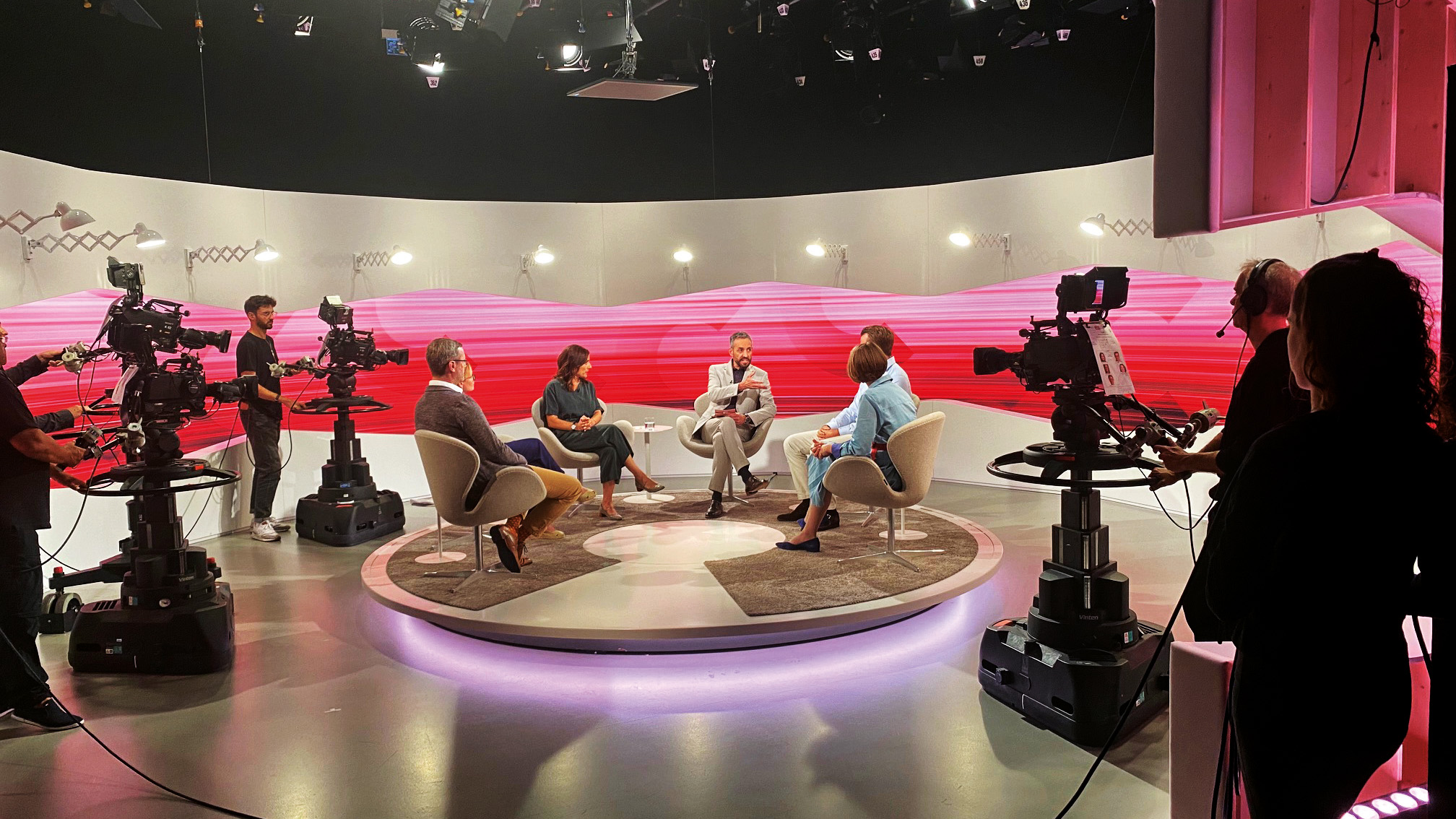 Mario Grossniklaus hat alles im Griff. Im Studio sind vier Kameras präsent. Er führt gekonnt durch die Sendung, fordert die Gäste mit seinen Fragen und sorgt dafür, dass alle etwa gleich lang zu Wort kommen. Seine Taktik besteht darin, den Gästen jeweils die Argumente der Gegenseite zu präsentieren. «So kann ich die Befragten fordern und bringe mich nie in eine schwierige Position», erklärt er. Dahinter steckt viel Vorbereitung. «Das Tüpfelchen auf dem ‹i› ist die Sendung. Die Moderation im Studio bedeutet Hochkonzentration und fühlt sich an wie ein Marathon. Da muss ich voll da sein, zu 100 Prozent zuhören und mir vorausschauend Gedanken machen, wie ich die Sendung weiterentwickle. Aber auch das Entwickeln und Gestalten einer Sendung finde ich hochspannend.»