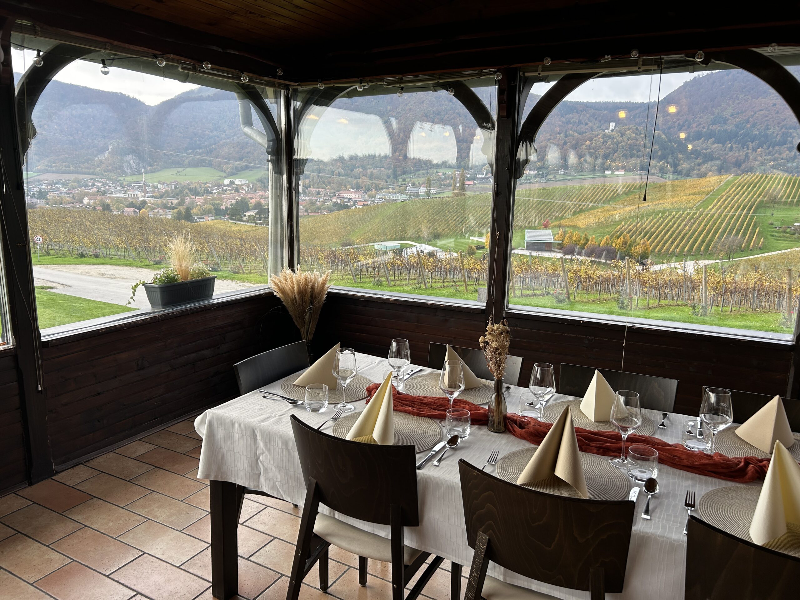 Tolle Aussicht auf die umliegenden Weingärten im Gasthof Zlati Grič.