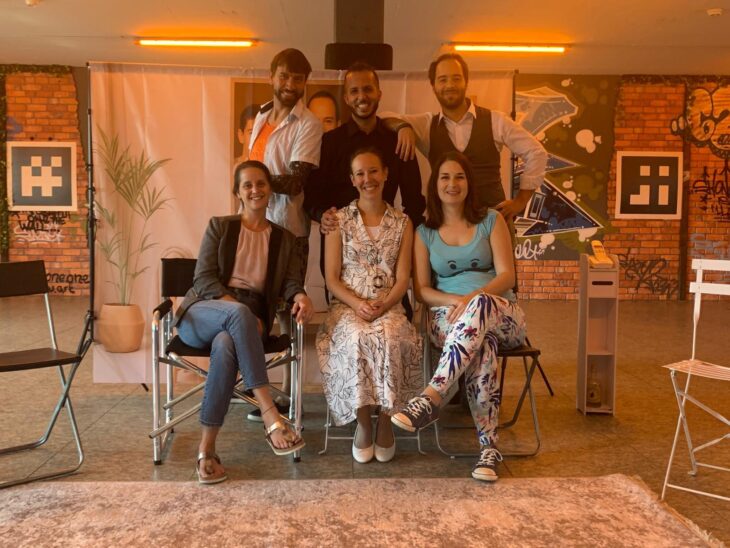 Das Ensemble mit Uwe Peter, Stephan Anon, Marco Sari (von links hinten) und Debora Schlumpf, Mona Gasser, Jessy Jenni (von links vorne).