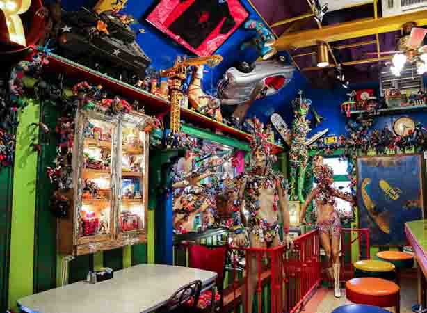 Das Papermoon Diner ist ein echter Hingucker. Neben seiner vielseitigen American Fusion-Küche – von veganen Nachos bis zu PB&J French Toast – beeindruckt es vor allem durch sein farbenfrohes Design. Mehr als 20 Jahre sammelte Designer David Briskie Kunstwerke, Skulpturen und kuriose Fundstücke, die das Innere und Äussere des Diners in eine skurrile Galerie verwandeln. Lokale Künstler sind ein fester Bestandteil: ihre Werke schmücken die Wände, und selbst die T-Shirt-Designs des Diners stammen aus der kreativen Szene Baltimores.