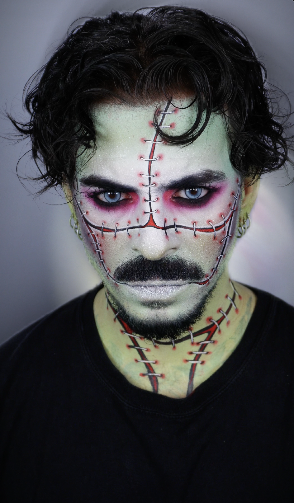 Das hängt vom Look ab. Einige Halloween-Looks brauchen zum Beispiel zwischen 4 und 6 Stunden. Doch dann ist es noch nicht vorbei: Sobald das Make-up fertig ist, folgt das Schneiden und Bearbeiten der Videos. Ich filme viele Sequenzen, um sicherzustellen, dass ich genug Material habe. Danach ist es eine echte Herausforderung, die besten Clips auszuwählen. Ich verbringe schnell einmal 1,5 bis 2 Stunden mit der Bearbeitung. Insgesamt kostet mich ein 35-Sekunden-Video für Instagram zwischen 7 und 9 Stunden Arbeit.