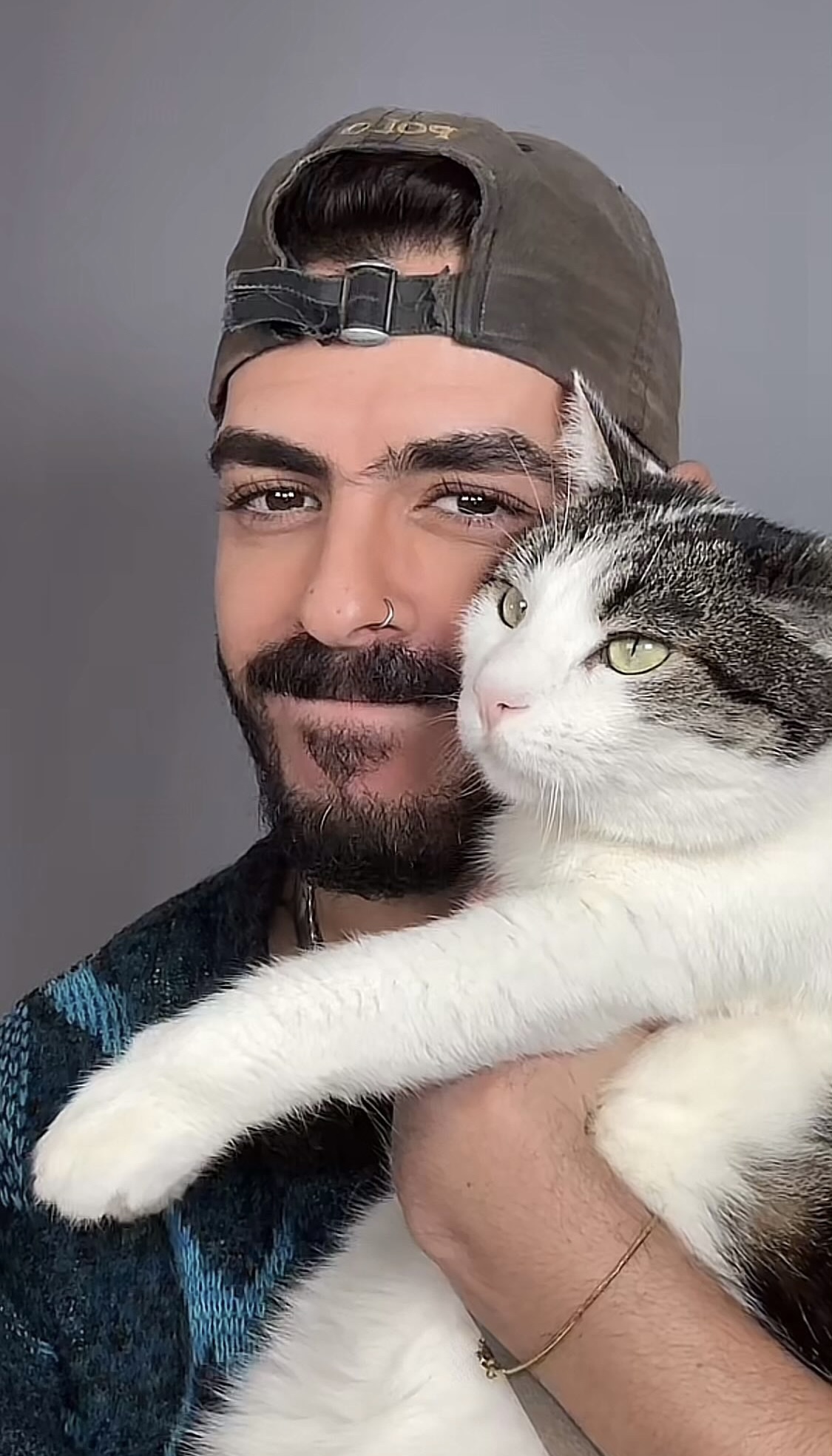 Mit einer Katze, nur die Katze. Aber ehrlich gesagt ist die Katze allein schon genug. Sie ist klein, anhänglich, aber sie nimmt bereits so viel Raum ein. Ich bin mir nicht sicher, ob da noch Platz für einen Mann wäre.