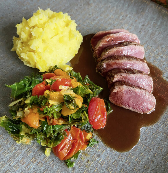 Serviervorschlag | Zu Sukuma Wiki passen Kartoffelstampf und ein rosa gebratenes Lammfilet. Alternativ passt auch Fisch statt Lamm.