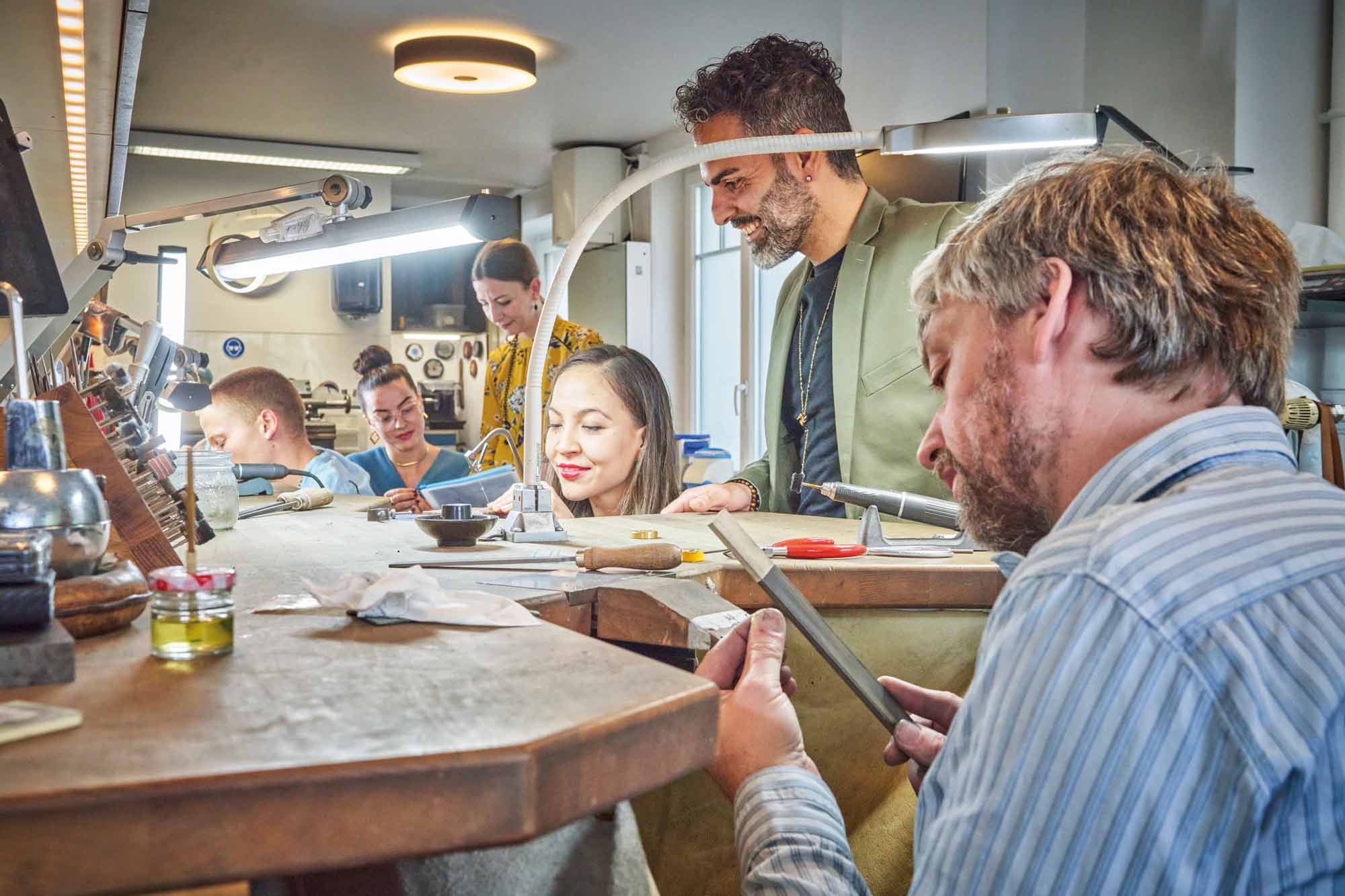 Heute ist er fasziniert davon, dass ein Schmuckstück mehr als nur ein Accessoire sein kann: «Es geht nicht nur darum, sich zu schmücken, sondern auch die eigene Persönlichkeit auszudrücken. Die Zusammenarbeit mit den Kund*innen, um das für sie perfekte Stück zu kreieren, macht diesen Beruf so besonders.»