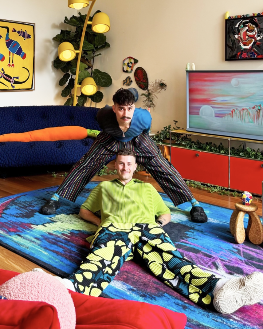 Wenn der schwedische Star-Designer Gustav Westman plötzlich zwei australische Brüder hätte, sähe das Ergebnis ungefähr so aus. Neonfarbene Möbel, Memphis-Designstücke und Dinge, die aussehen, als hätte man sie aus einem Kunstmuseum entwendet. Das alles arrangieren die beiden mit einer Lässigkeit, die ihresgleichen sucht. Ihnen zu folgen, macht nicht nur Spass, sondern auch Lust, die eigene Wohnung komplett umzukrempeln.